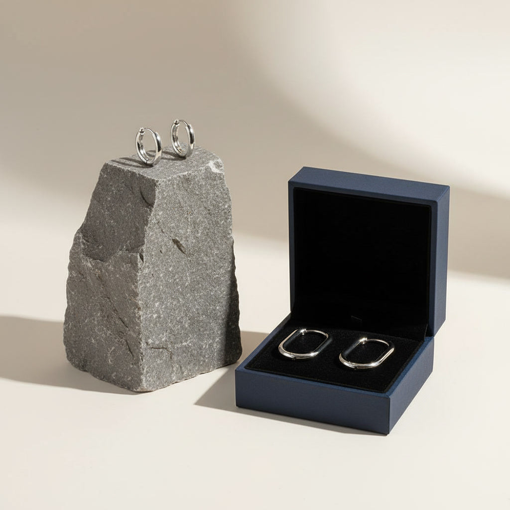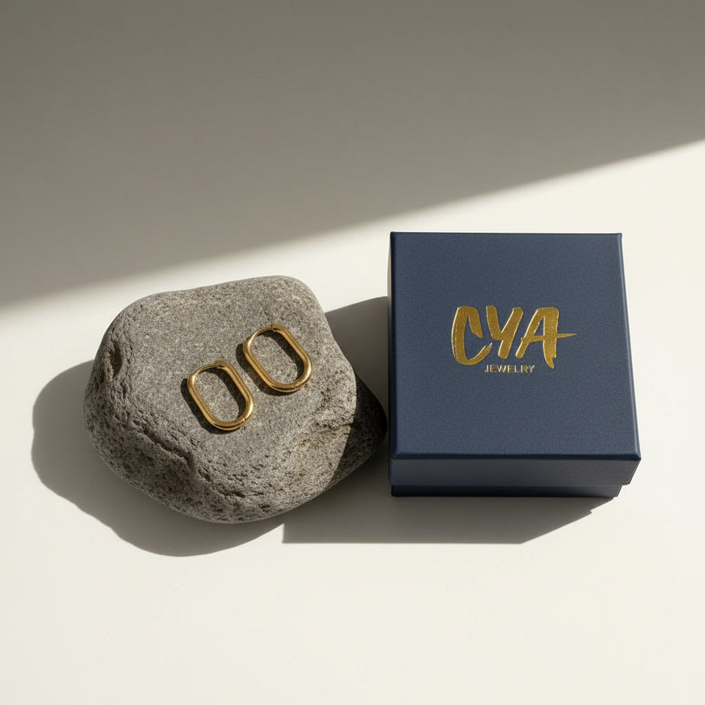 עגילי חישוק מרובעים עדינים ודקים, עם הסוגר הכי נוח בעולם.