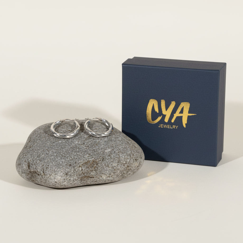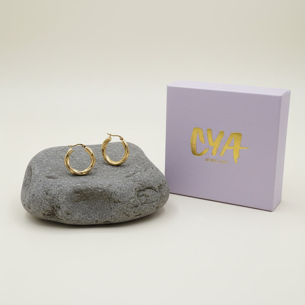 עגילי חישוק עבים עם טוויסט מגניב בטקסטורה