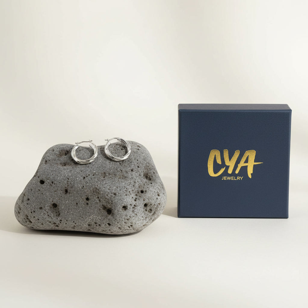 עגילי חישוק עבים עם טקסטורה