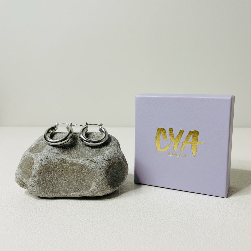עגילי חישוק כסופים עבים