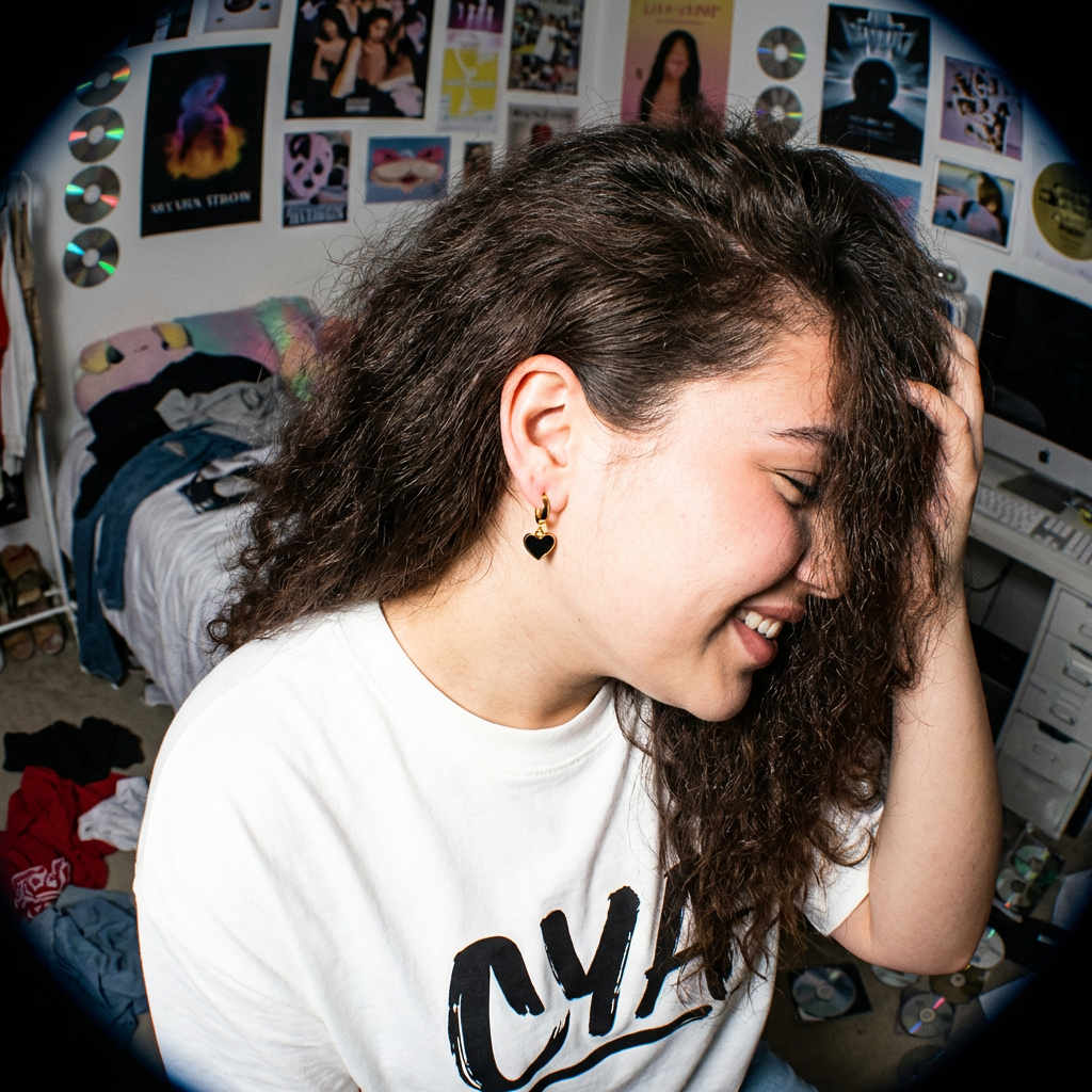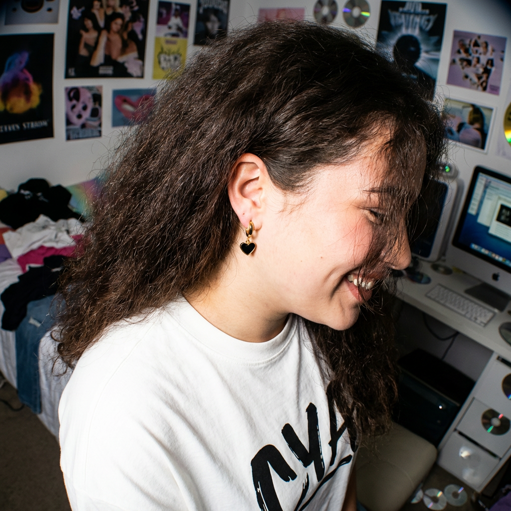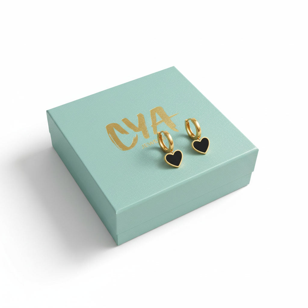 עגילי חישוק קטנים ועבים עם צ׳ארמ לב שחור עטוף זהב