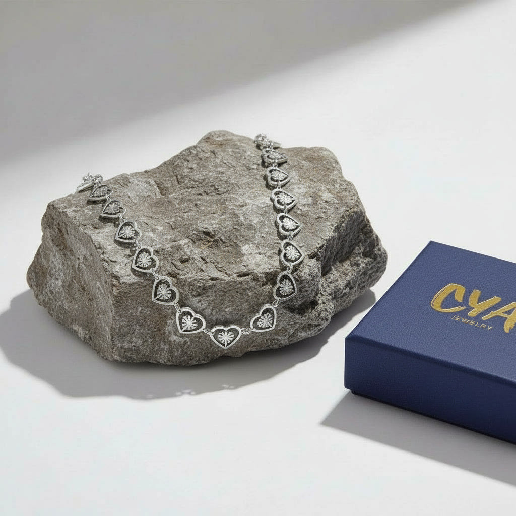 צמיד לבבות כסוף דק ונסיכותי בצבע כסף או זהב